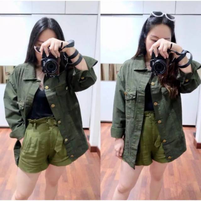 FOURFASHION JAKET JEANS WANITA OVERSIZE WARNA HIJAU ARMY Sumber shopee.co.id